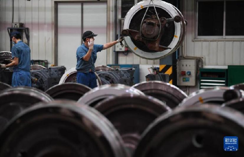 8月16日,廣州機務段職工在吊運機車車輪。新華社記者 鄧華 攝