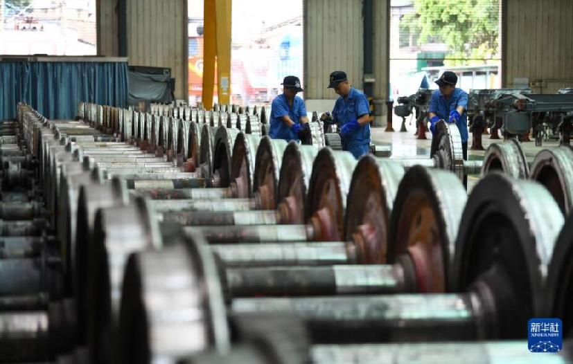 8月16日,廣州機務段職工在對機車車輪進行探傷作業。新華社記者 鄧華 攝?