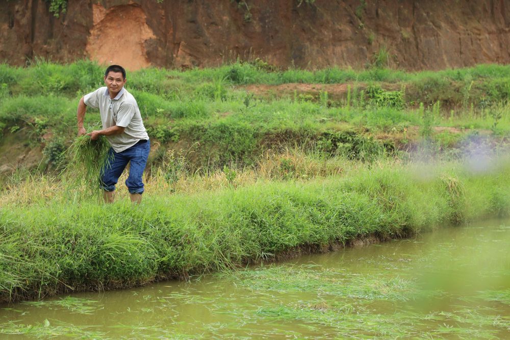 2022年6月17日,江西省贛州市興國縣華坑村村民賴德源在豬圈工作。 新華社記者 李思佳攝