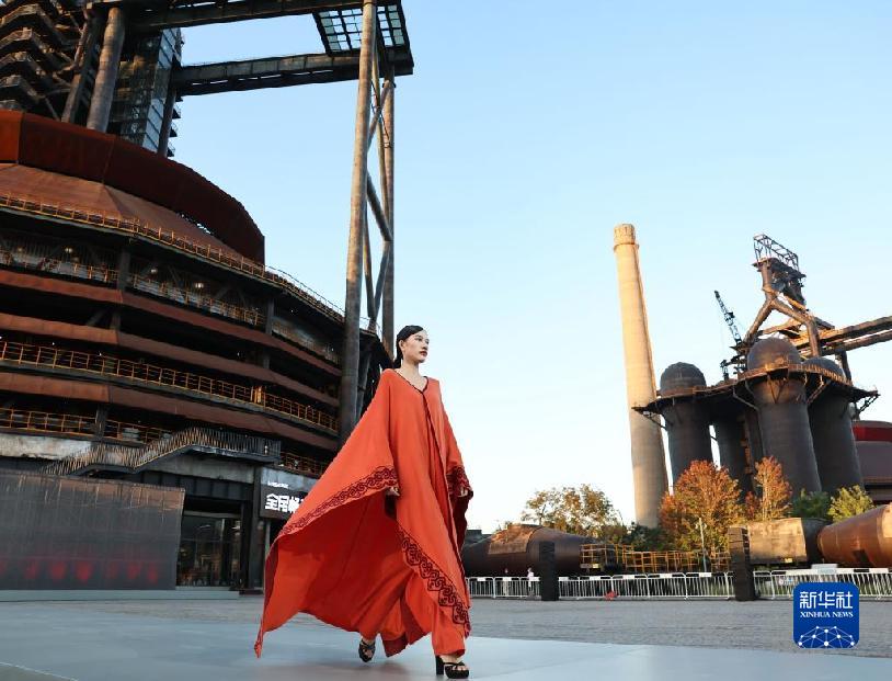 9月1日,模特在北京首鋼園展示知名時裝設計師房瑩設計的時裝。