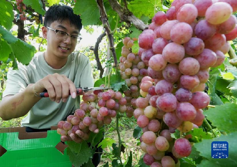 9月12日,河北省晉州市周家莊鄉果農在果園采摘葡萄。