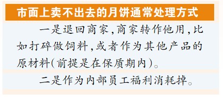 記者通過調查了解發現,零售商都表示賣不完的月餅可以退回給供應商,而月餅廠家則表示會通過發福利、做飼料等渠道將未銷售完的產品處理掉。