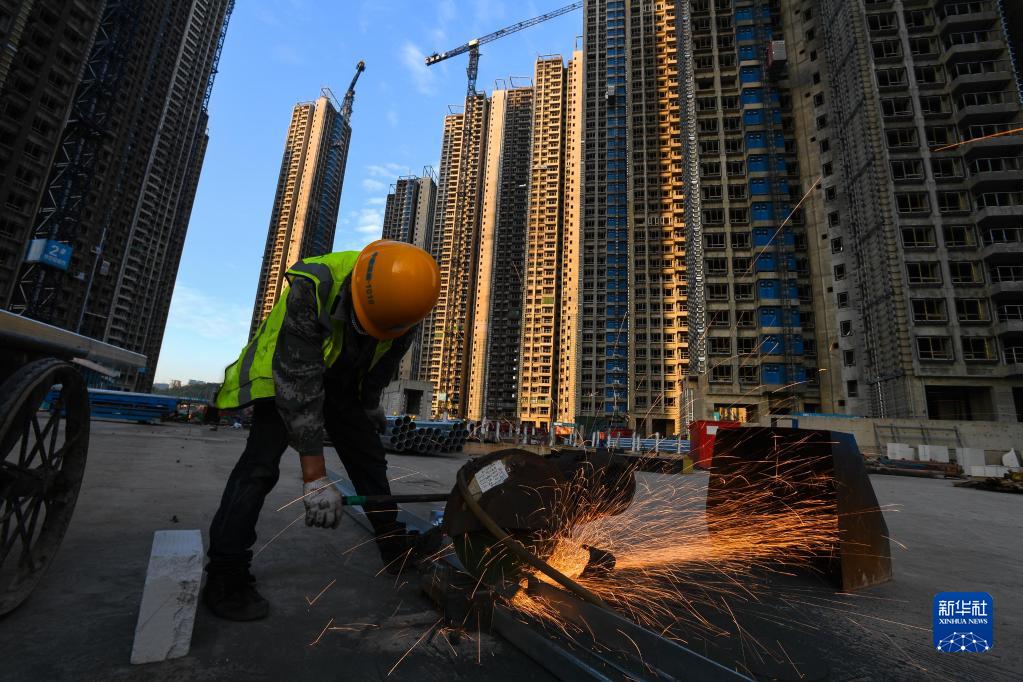 工人在華富村回遷安置房建設現場施工(10月20日攝)。新華社記者 劉大偉 攝