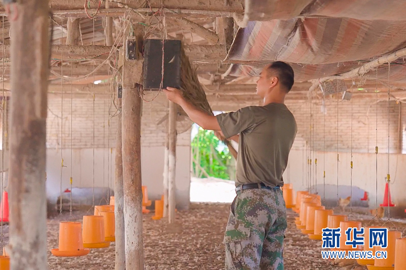 聶炬輝在細心清理音響上的灰塵,為雞營造安全、舒適、干凈的環境。新華網發(張羲輪 攝)