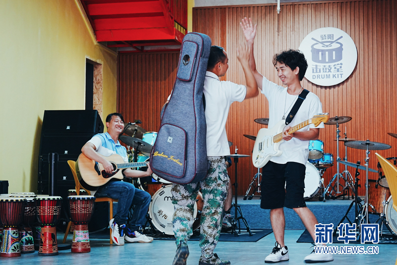 聶炬輝在業余時間與樂隊成員一起唱歌、練歌,一起享受音樂的樂趣,平衡好工作和生活,保持對生活的熱愛。新華網發(張羲輪 攝)