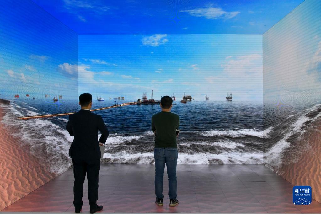 11月24日,觀眾在海博會現場體驗“海洋油氣勘探開發全景漫游”。新華社記者 梁旭 攝