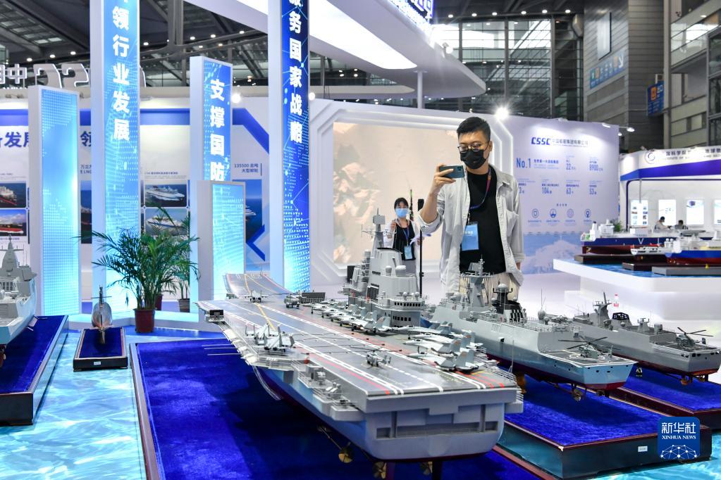 11月24日,觀眾在海博會現場觀看中國船舶集團展出的船只模型。新華社記者 梁旭 攝