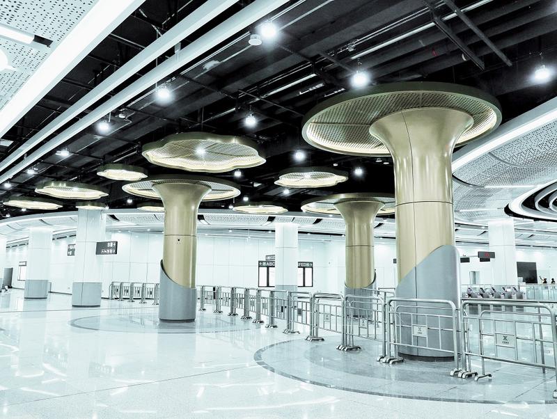 與此同時,愉園站、坪山圍站、坪環站等重要站點的建設中踐行了“站城一體化”的可持續發展理念?!坝鋱@站的C出入口預留連通口,未來可接入商業中心走廊,串聯建筑中庭可直達商業中心。坪山圍站通過下沉廣場把地鐵與周邊城市更新項目緊密相連,未來地鐵車站將成為片區中心,打造怡人乘車環境的同時,方便乘客的出行?!鄙钲诘罔F負責人向記者介紹。