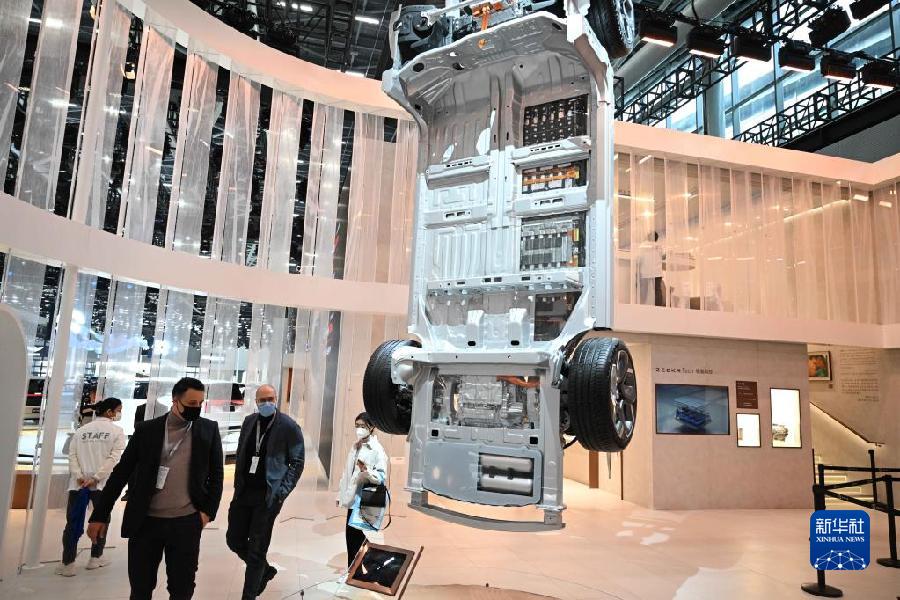 12月30日,在車展的極氪汽車展臺,參觀者觀看SEA浩瀚架構。