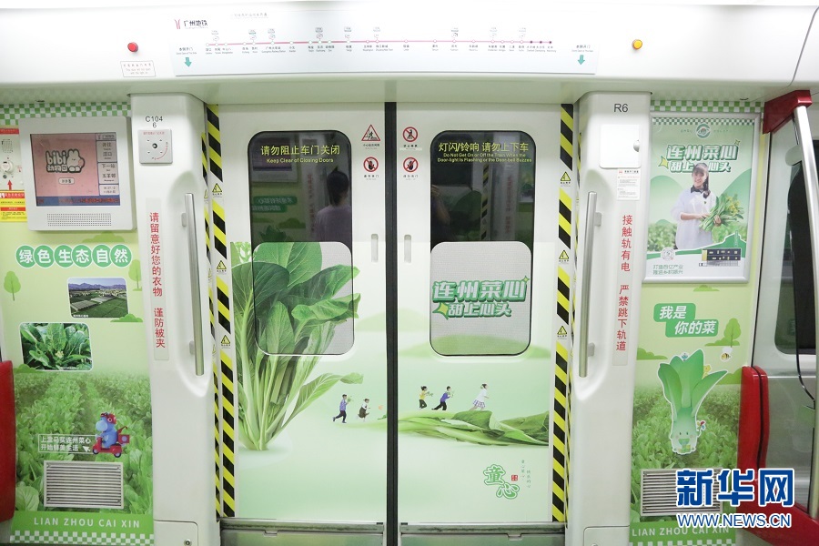 廣州地鐵5號線“連州菜心”專列。新華網發