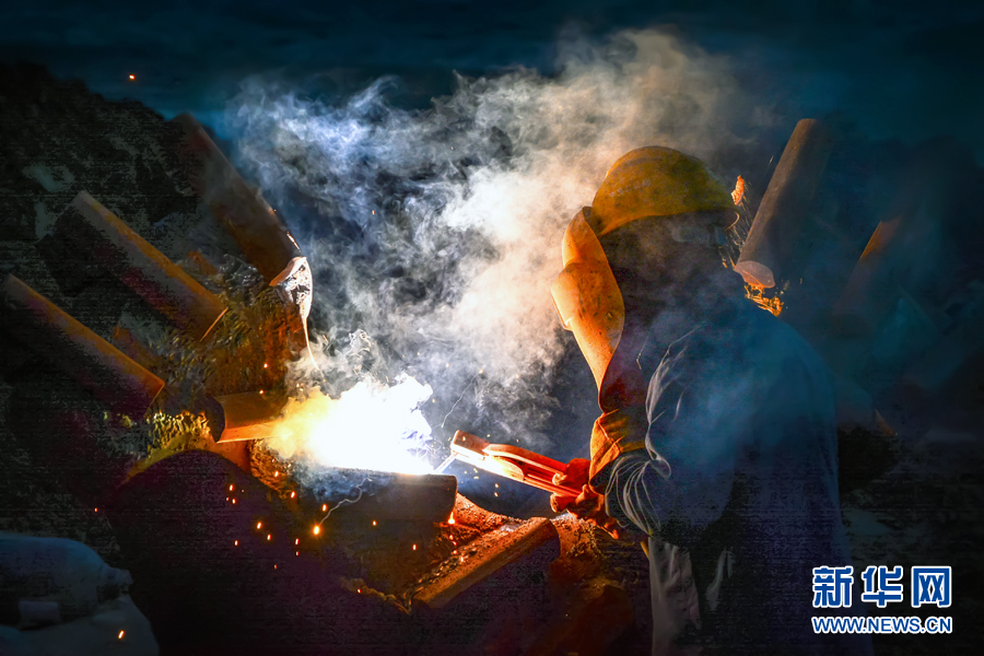 2023年1月1日,施工人員在進行焊接作業。建設者們表示,要趕在春節前完成各項節點工程,沖刺2023年3月全面建成投產。新華網發 (劉武基 攝)
