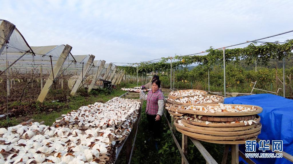 農戶曬柑皮。新華網發 (張羲輪 攝)