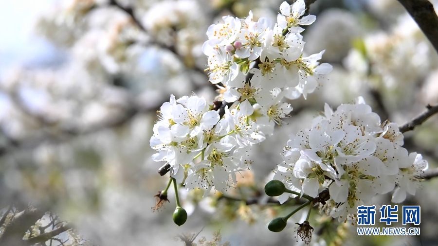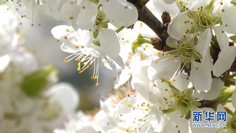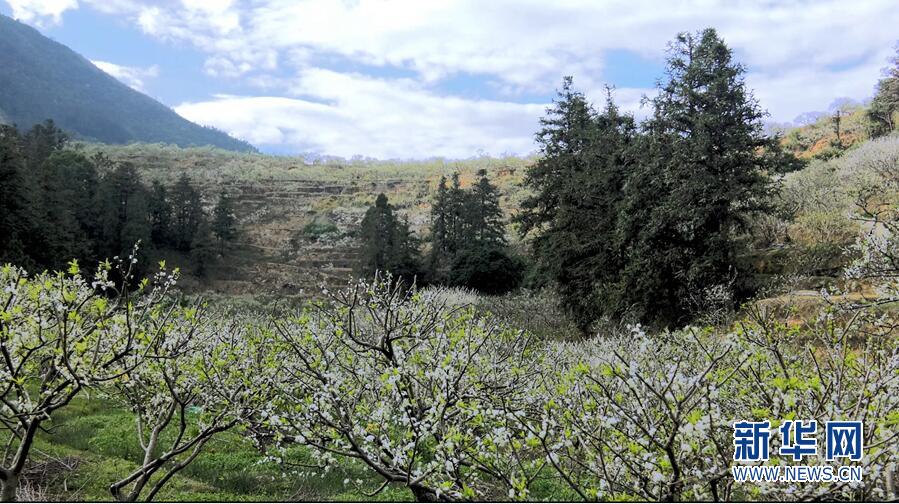 潔白的李花,花團錦簇,把當地景區裝點得如詩如畫。新華網發