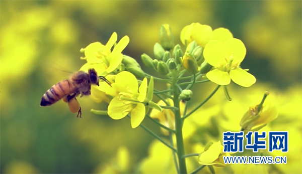蜜蜂在花間飛舞。新華網發(梅州市梅縣區融媒體中心供圖)