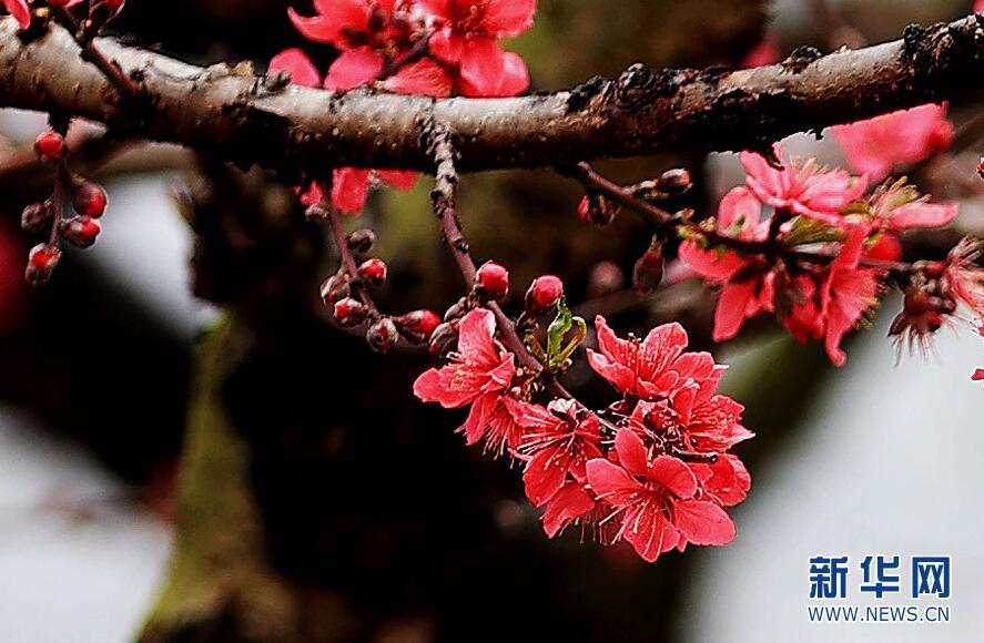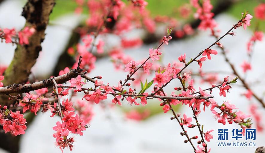 粉紅的花朵在枝頭悄然盛開。新華網發(王建橋 攝)