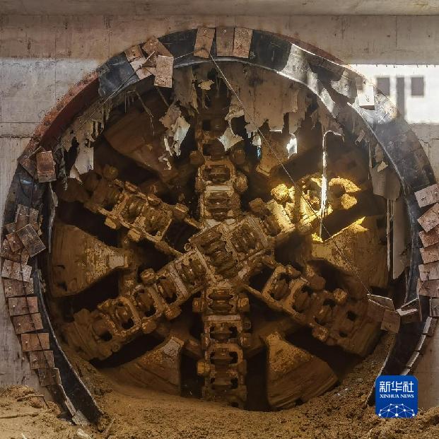 2月25日,中國鐵建大橋局“務實號”盾構機刀盤破洞而出,東莞地鐵1號線水濂山站雙線盾構隧道貫通。新華社記者 劉大偉 攝