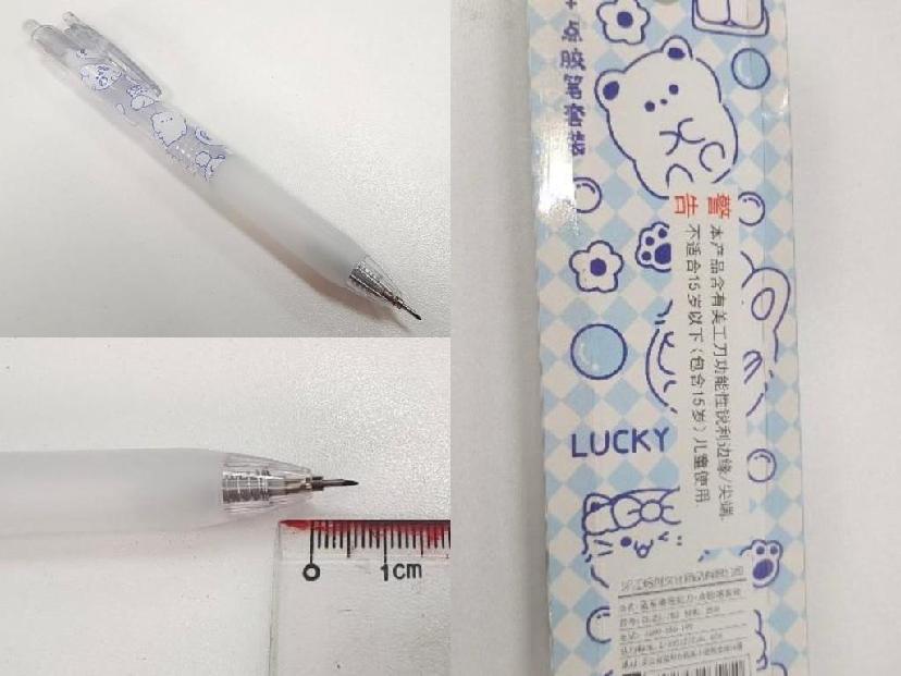 記者走訪了南京市游府西街小學、洪武北路小學、南京師范大學附屬小學周邊幾家文具店,發現仍有店鋪出售“筆刀”“刻刀筆”。這種“刻刀筆”外觀與普通圓珠筆無異,但內含尖銳刻刀,往往被作為手工類學具出售。此前因其對中小學生,特別是低齡未成年人造成安全隱患,已被有關部門叫停在中小學周邊出售。