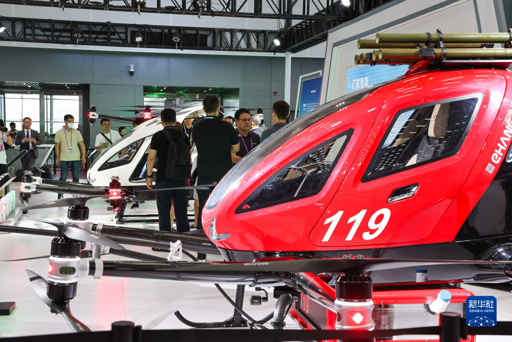 這是廣交會新設置的新能源及智能網聯汽車展區展示的億航載人和運輸無人機(4月15日攝)。新華社記者 劉大偉 攝