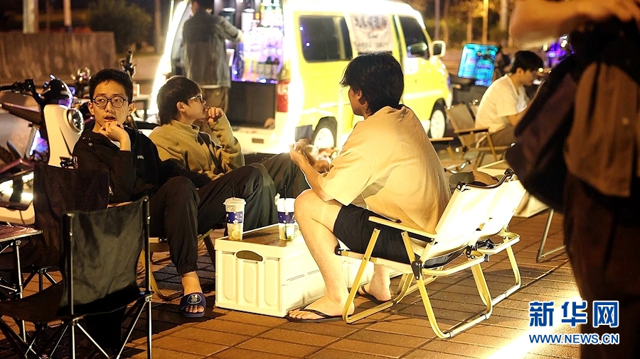 在水秀一路車尾箱集市,攤主為顧客準備了不少露營椅。市民約上三五好友坐在一起品咖啡、吃小吃,感受“車尾箱文化”。新華網發(張朝竣 攝)