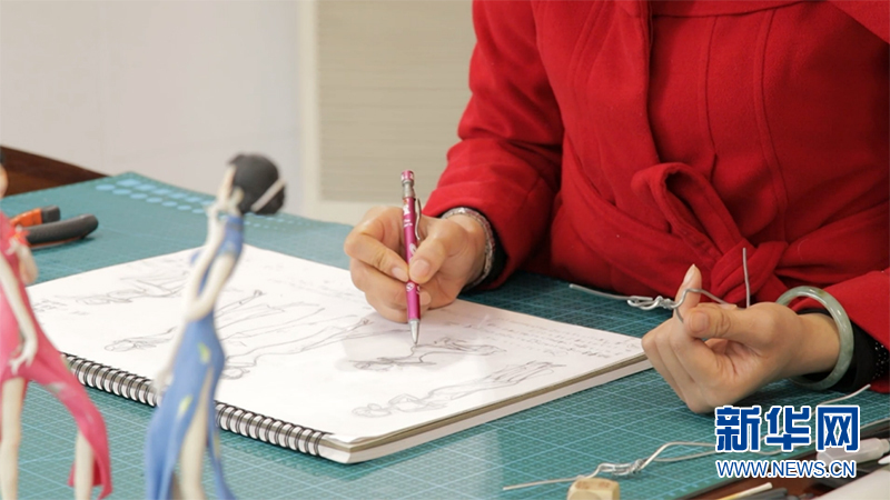 面塑是以面粉、糯米粉為主要原料的一門塑作藝術,歷史悠久。面塑的制作過程與繪畫技藝相關。興趣使然下,陳秋敏花費大量時間與精力,學習與精進這項技藝。圖為陳秋敏繪制面塑模型草圖。新華網發(黎天智 攝)