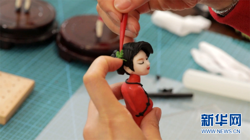 經過努力自學和“北上”取經,陳秋敏的面塑技術愈發熟練,并成立了“面塑非遺傳承工作室”。新華網發(黎天智 攝)