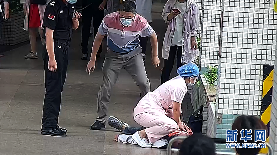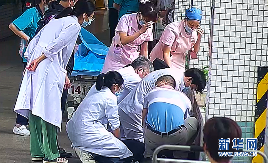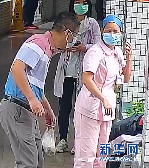 呼吸科醫生夏欣田提著午飯經過,見狀放下飯盒,參與急救行動。新華網發(視頻監控畫面)