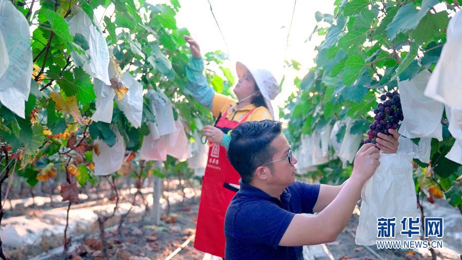 陳國堅種植葡萄的同時,也吸納當地的一些閑置的勞動力,讓他們在家門口有一份工作。新華網發(黃紫華 攝)