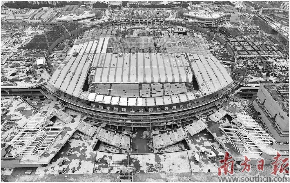 近日,廣州白云站綜合交通樞紐一體化項目配套場站工程主體結構完成封頂。通訊員供圖