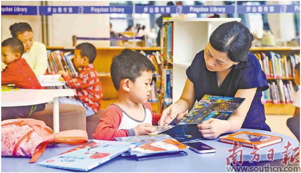 5月14日母親節,在深圳坪山圖書館,媽媽們帶著孩子前來閱讀圖書,共享親子時光。