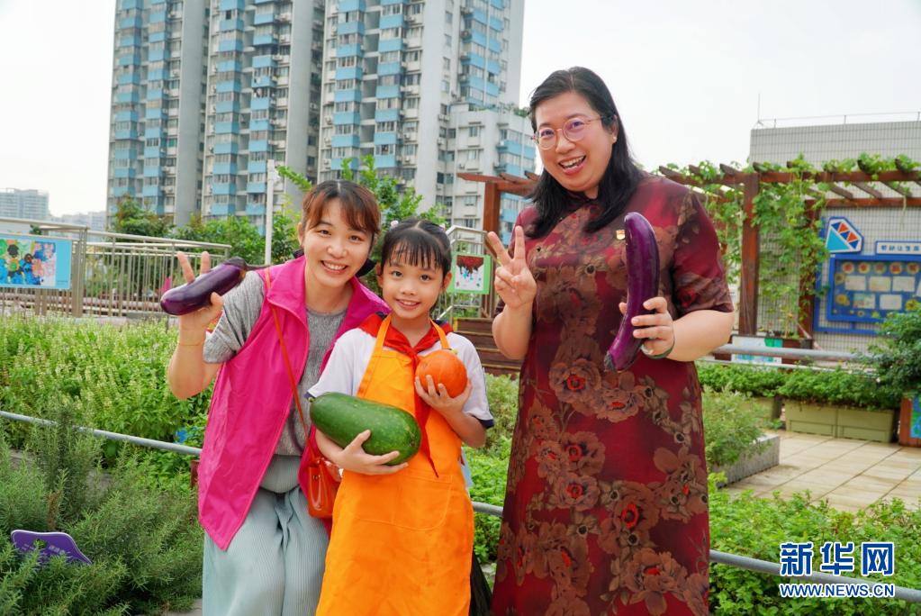 寶玉直實驗小學學生采摘果蔬。新華網發