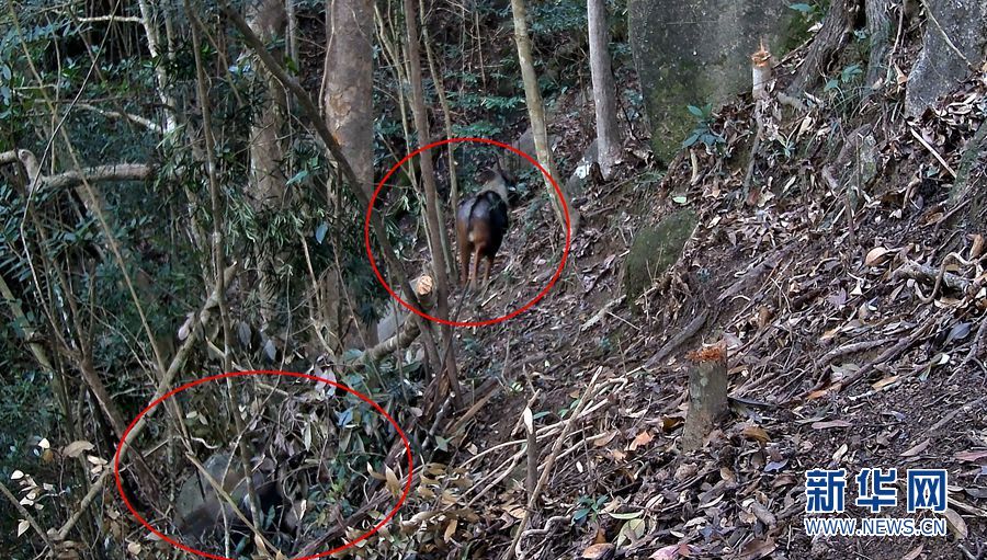 廣東象頭山保護區布設的紅外相機拍攝到兩頭中華鬣羚。新華網發(廣東省林業局供圖)
