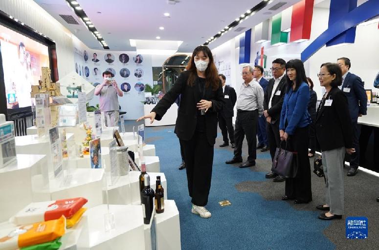 5月22日,考察團在珠海市中交匯通橫琴廣場參觀。新華社發
