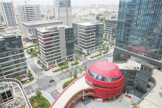 從國際設計大廈俯瞰,廣州設計之都街區和紅點藝術廣場展現在眼前。