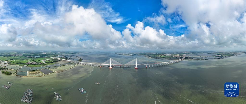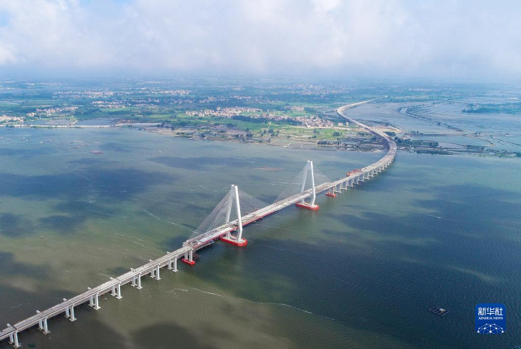 鷺洲大橋猶如長龍臥波,橫跨南三島海域(5月25日攝,無人機照片)。新華社記者 劉大偉 攝