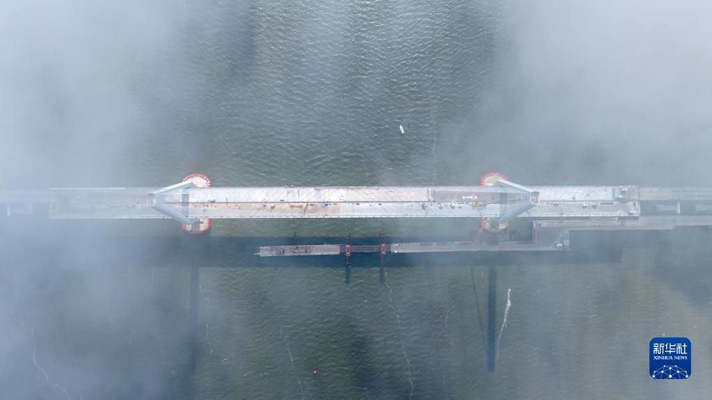 5月25日拍攝的建設中的鷺洲大橋(無人機全景照片)。新華社記者 毛思倩 攝