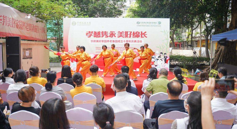 5月26日,華邦美好家園養老集團成立十周年慶典活動在廣州東湖西孝慈軒舉辦,入住長者、家屬、孝慈養老從業者等齊聚現場,分享自己與華邦美好家園的故事,并通過粵劇表演、精彩舞蹈等形式送上祝賀。