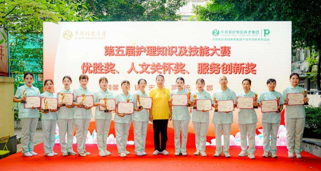 在當天的十周年慶典活動上,還舉行了華邦美好家園第五屆護理知識及技能大賽頒獎儀式,一支專業性強、素質過硬的養老護理隊伍,通過以賽代訓的形式不斷磨煉,持續提升養老服務質量,用專業的護理技術托起長者晚年幸福的夕陽紅。