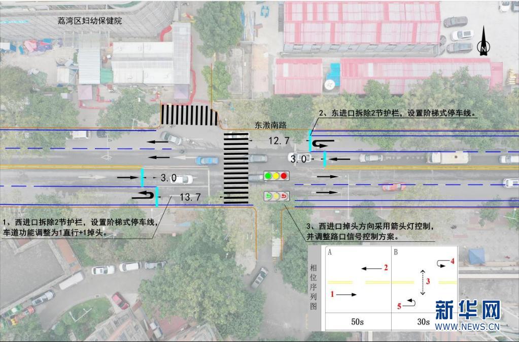 東漖南路婦幼保健院路口右側掉頭示意圖。新華網發(廣州交警供圖)