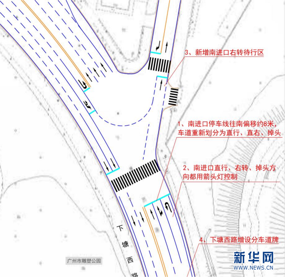 下塘西路政通路路口右側掉頭示意圖。新華網發(廣州交警供圖)