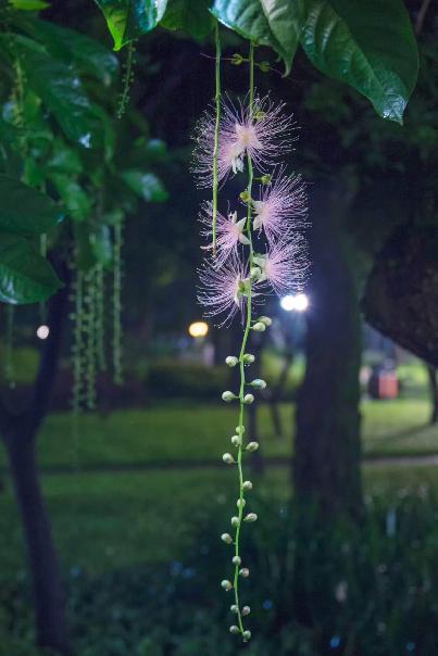 玉蕊花又名“瓊花”,屬常綠小喬木,花的顏色有白色、粉紅色、粉紫色,有著長而懸垂的穗狀花序,近嗅有清香。