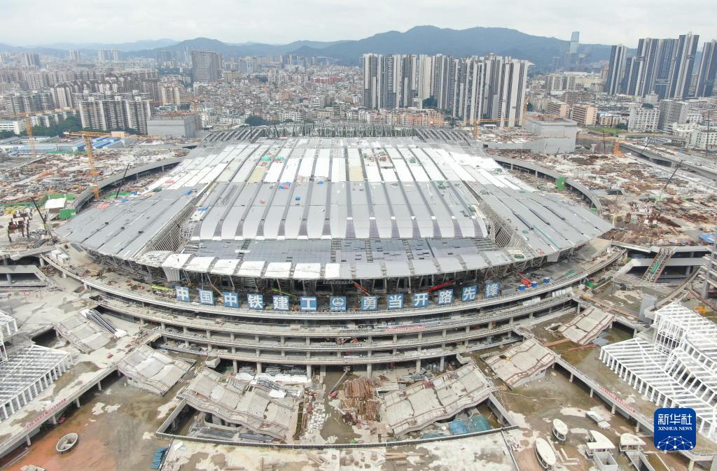 這是6月19日拍攝的建設中的廣州白云火車站(無人機照片)。