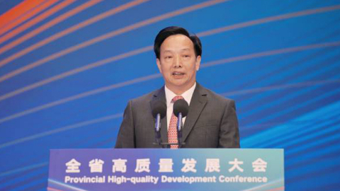 比亞迪股份有限公司董事長兼總裁王傳福在全省高質量發展大會上發言。
